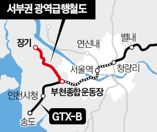 서부권 광역급행철도는 'GTX-D 장기~부천종합운동장역 구간'으로도 알려져 있다. ‘더블 Y자’ 형태로 추진되는 GTX-D노선은 장기역과 인천공항역에서 각각 출발해 부천 대장역에서 모인다. 이후 삼성역에서 갈라져 하남 교산과 강원 원주 방면까지 연결된다.