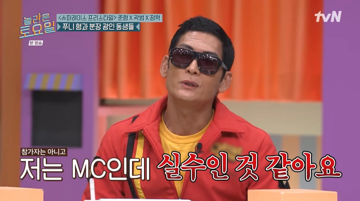 올해 56세인 박준형은 '슈퍼레이스 프리스타일' MC 발탁에 대해 "날 MC로 쓴 건 실수인 것 같다. 종이 대본, 프롬포터 다 안 보인다"고 토로했다.