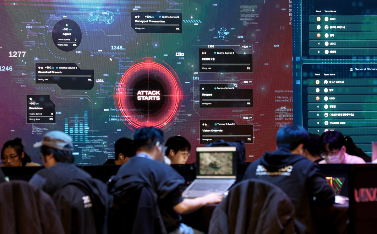 1일 서울 강남구 코엑스에서 2025 인공지능(AI) 해킹방어대회 본선 경기가 열리고 있다.