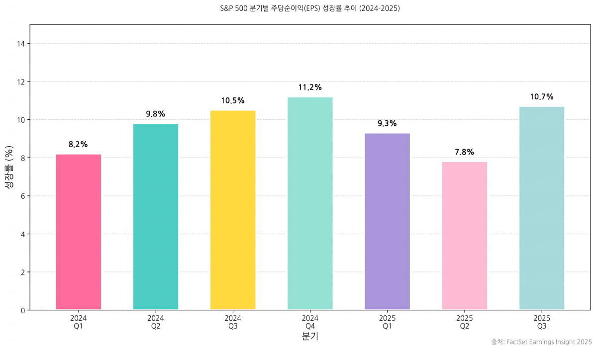 특히 ‘매그니피센트 7(M7)’로 불리는 대형 기술 기업들이 예상치를 훨씬 웃도는 실적을 내놓으면서 전체 시장의 성장률 전망을 한층 끌어올렸다. 팩트셋에 따르면, 이런 흐름은 인공지능(AI)을 주도하거나 적극적으로 활용하는 기업들이 당분간 성장의 과실을 독점할 가능성을 보여주는 신호로 해석된다. AI 기술을 둘러싼 혁신 경쟁이 기업 가치와 시장 심리에 직접적인 영향을 미치고 있는 셈이다.