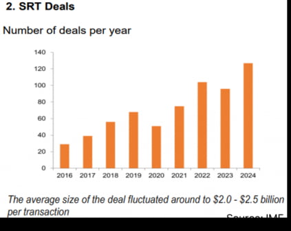 국제통화기금(IMF)에 따르면 2024년 기준 1조1000억 달러 이상의 자산이 SRT로 유동화됐습니다. 아직 규모는 상대적으로 작은 편입니다. 다만 미국에선 2023년 이후에나 이 거래가 활성화되기 시작했고, 골드만삭스 JP모건 모건스탠리 등 대형 은행뿐 아니라 지역 은행들도 다양한 자산을 기반으로 활발하게 거래를 늘리고 있어 향후 빠르게 시장이 커질 수 있습니다. 특히 이제 AI 데이터센터 대출까지 이 방법으로 유동화될 수 있다면 잠재력이 상당합니다.