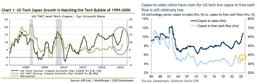 물론 지금 이뤄지는 AI 인프라 투자와 20년 전 서브프라임 모기지 대출을 일 대 일로 비교할 순 없습니다. 지금의 AI 투자 사이클이 닷컴 버블 당시와 비교했을 때 어느 단계에 있는지에 대해서도 의견이 분분하지요. 또 리스크를 제대로 이해하는 투자자들 사이의 거래라면 은행이 SRT 같은 상품들을 통해 일부 대출 부실 위험을 외부에 이전하는 게 반드시 나쁜 것도 아닙니다.